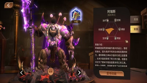 阿瑞斯是蛮荒部落最强大的战士,曾任族长。因渴求不朽的生命与无尽的权力而堕落,在黑暗之神米尔寇的诱惑下,获得了死亡的力量,却也成为米尔寇创造更多死亡工具的奴隶。